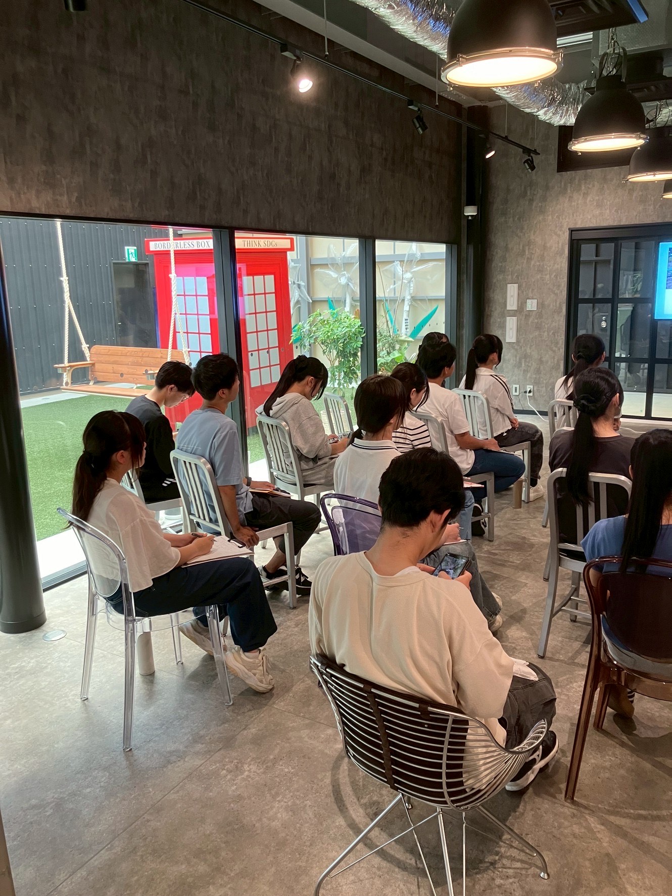 ご存知の方もいらっしゃるかもしれませんが、CNPにはすべり台やブランコ、卓球台などがあります✨これは、リサイクルや環境のことを学ぶだけでなく「また来てみたい」「CNPって楽しそう」と思ってもらえるような親しみやすい場所にしたい、という想いから設置しているものです。実際に今回も生徒の皆さんが楽しそうに遊ぶ姿を見て、その効果を改めて実感しました。