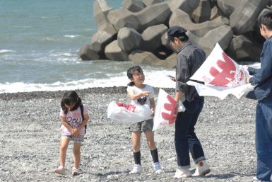 アートゴミ袋で海岸清掃 ウェルカメクリーン作戦