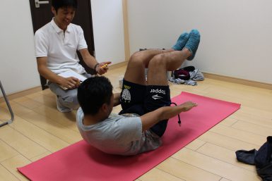 こうして脚を重点的に追い込んだ後は、体幹を鍛えます。